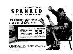 • One of the cutesy parental spankings next. There are literally thousands of these. It comes off a bit odd to us these days, spanking is no longer the fashion and it’s been on the way out for probably twenty years or more so it can weird people out how often it was used in these old ads, especially when you come from a place where spanking is your kink.