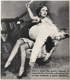 • Did you think it was only dominant men asserting their authority in ads? Oh no, those were the majority of course because at the time that was society, but there are a number of this type out there too, besides the mother spanking child we saw just above. I think a lot of men secretly fantasized about their wives taking charge. I believe this was a radio show commercial, but I’m not sure.