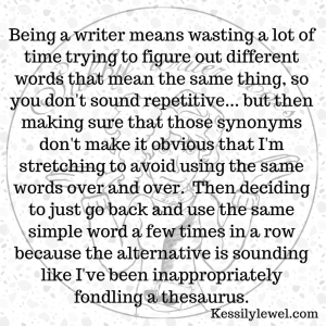 So my first news is that I decided to put together a new logo to use when posting about writer issues, writer problems, etc. I thought it would be more fun to have a little cartoon to go along with it, and people seem to like them–yay! So after making the logo I decided to use it as a background for the text so I could post things as memes, and I’m liking how it looks.