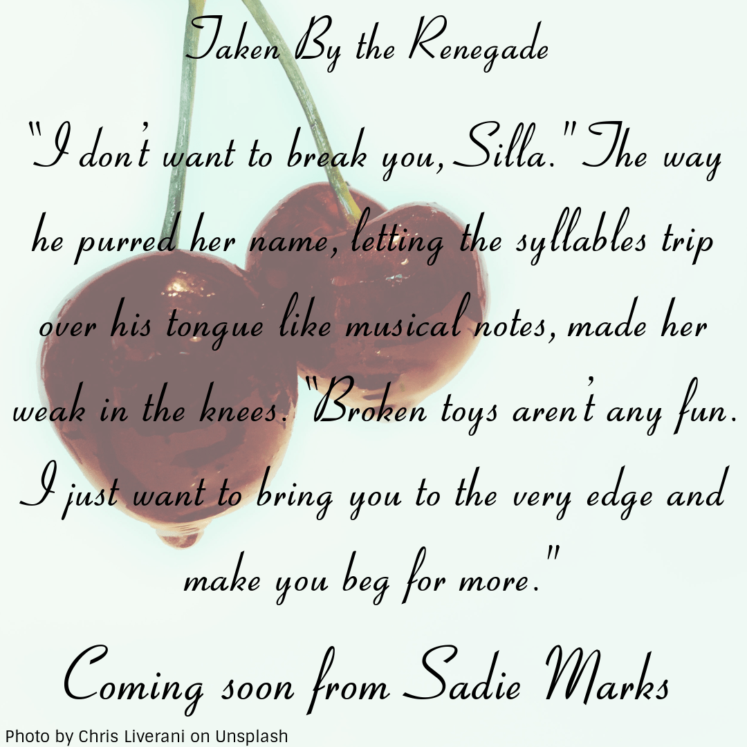 I know updates have been slow lately, sorry about that! I have a number of blog posts I’m working on. The next post will probably be the one on how to make your own silent loop-spanking toy, aka a DIY version of the infamous Loopy Johnny. I’ve already started it and bought supplies so I could take some pictures. I just need to pull it together. Continue reading “Taken by the Renegade teaser and some updates.”